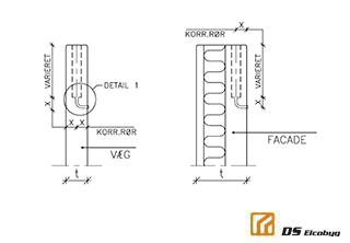 1915 Moulded joint between facades, wall, T-cross in jointing
